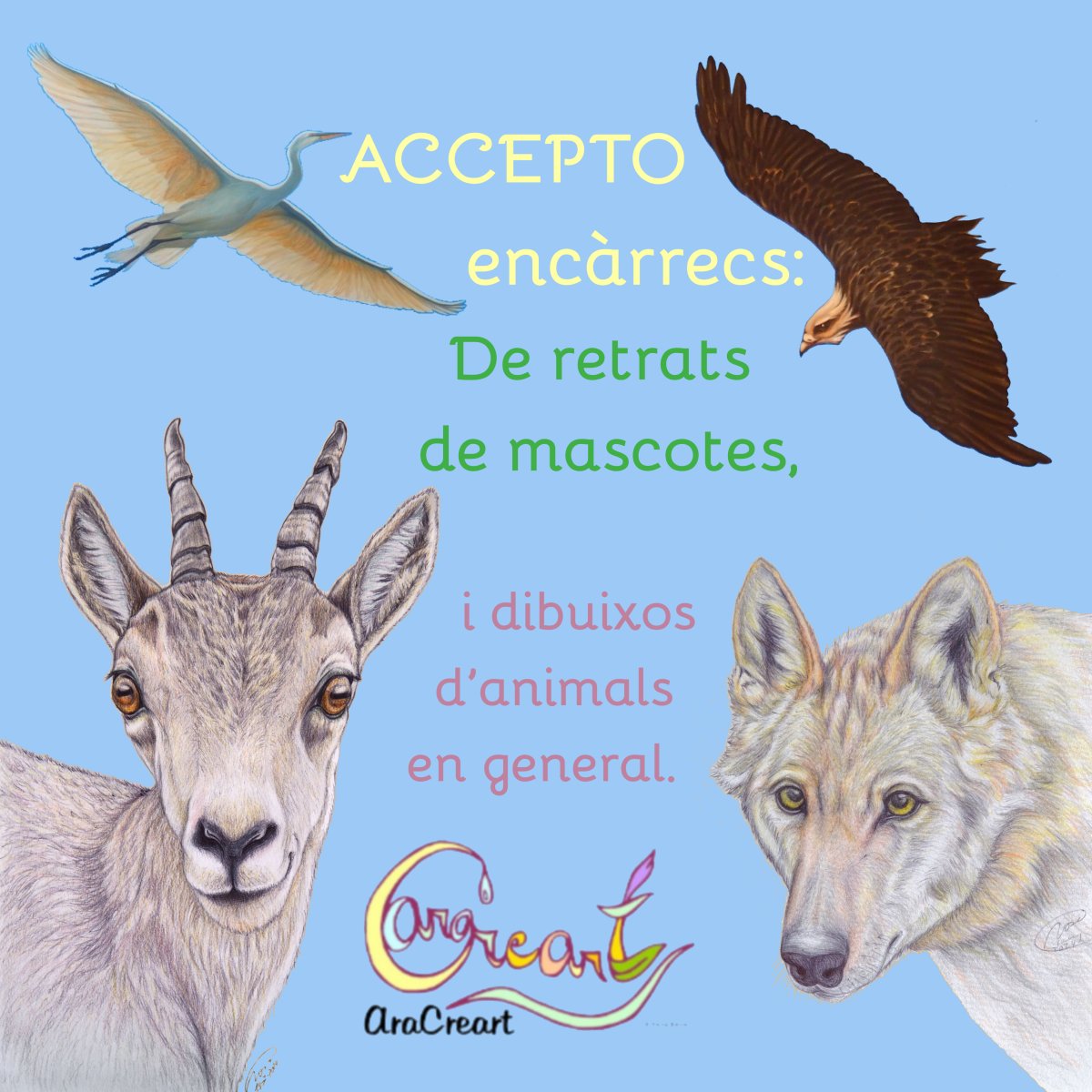 Si vols fer un regal especial a algú que estimes i donar-li una sorpresa agradable. Accepto encàrrecs de retrats de mascotes i dibuixos d’animals en general. En l’estil que pots veure en aquest espai artístic.