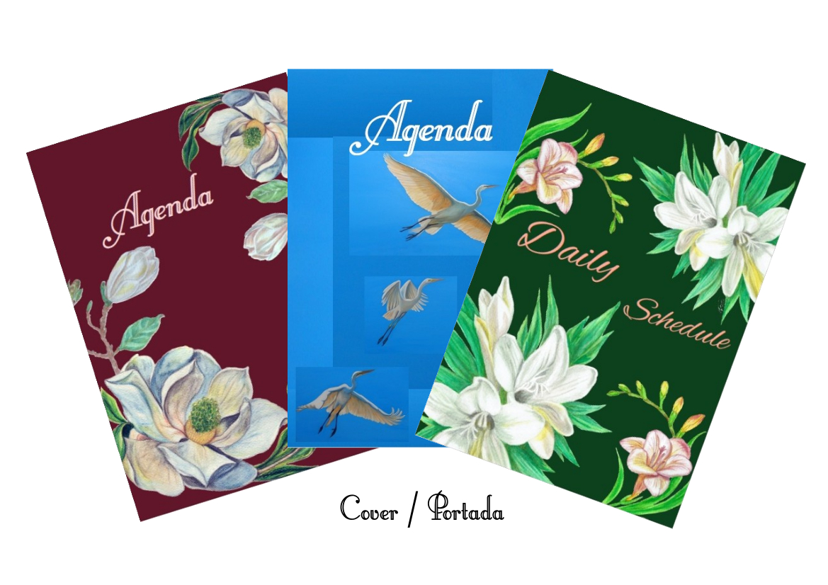 At AraCreat, we've designed a new planner. We now have four exclusive planner models to collect. In the same natural and symbolic vein, we now have a planner with eagle drawings that includes calendars, space for schedules, and space to write for two days on each page. It's a perpetual planner that lasts throughout the school year. It runs from September to August and includes space for notes.