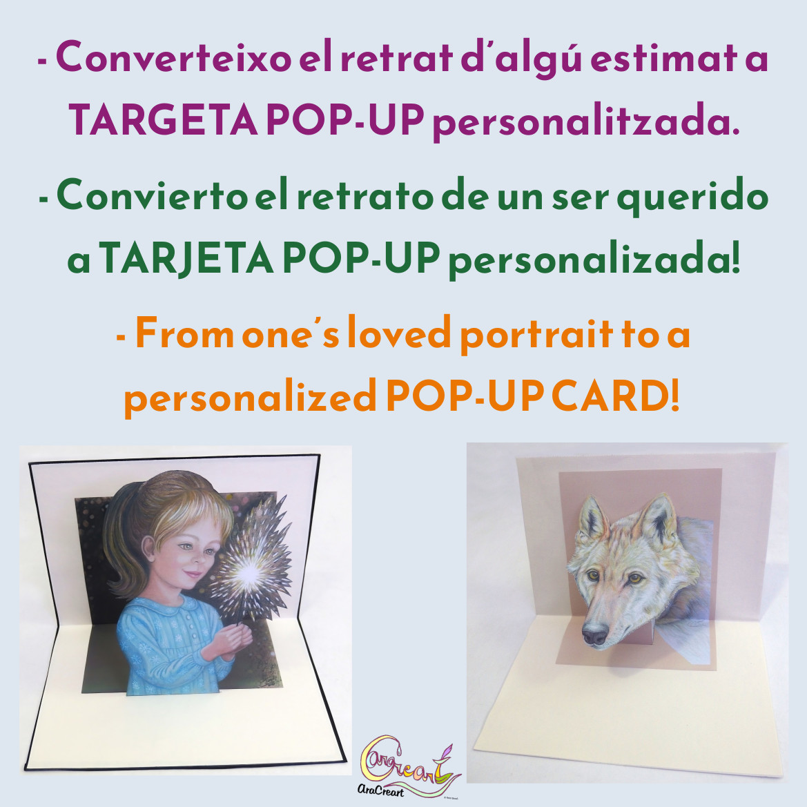 Order a portrait of someone you love and I will turn it into a pop-up card so you can give an ORIGINAL GIFT. For Father’s Day (March 19), Mother’s Day (May 3) or Sant Jordi (April 23).