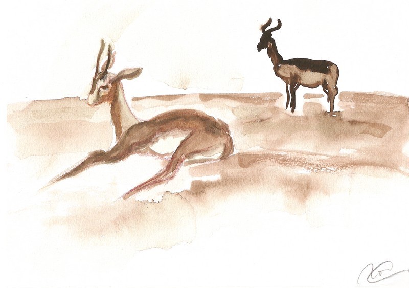 Pencil colors drawing with watercolor. From a photo by Manuel Ramírez Muñoz.
