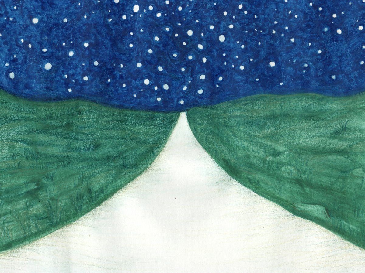 Paisatge d'Irlanda a pastels, llapis de colors i retoladors.