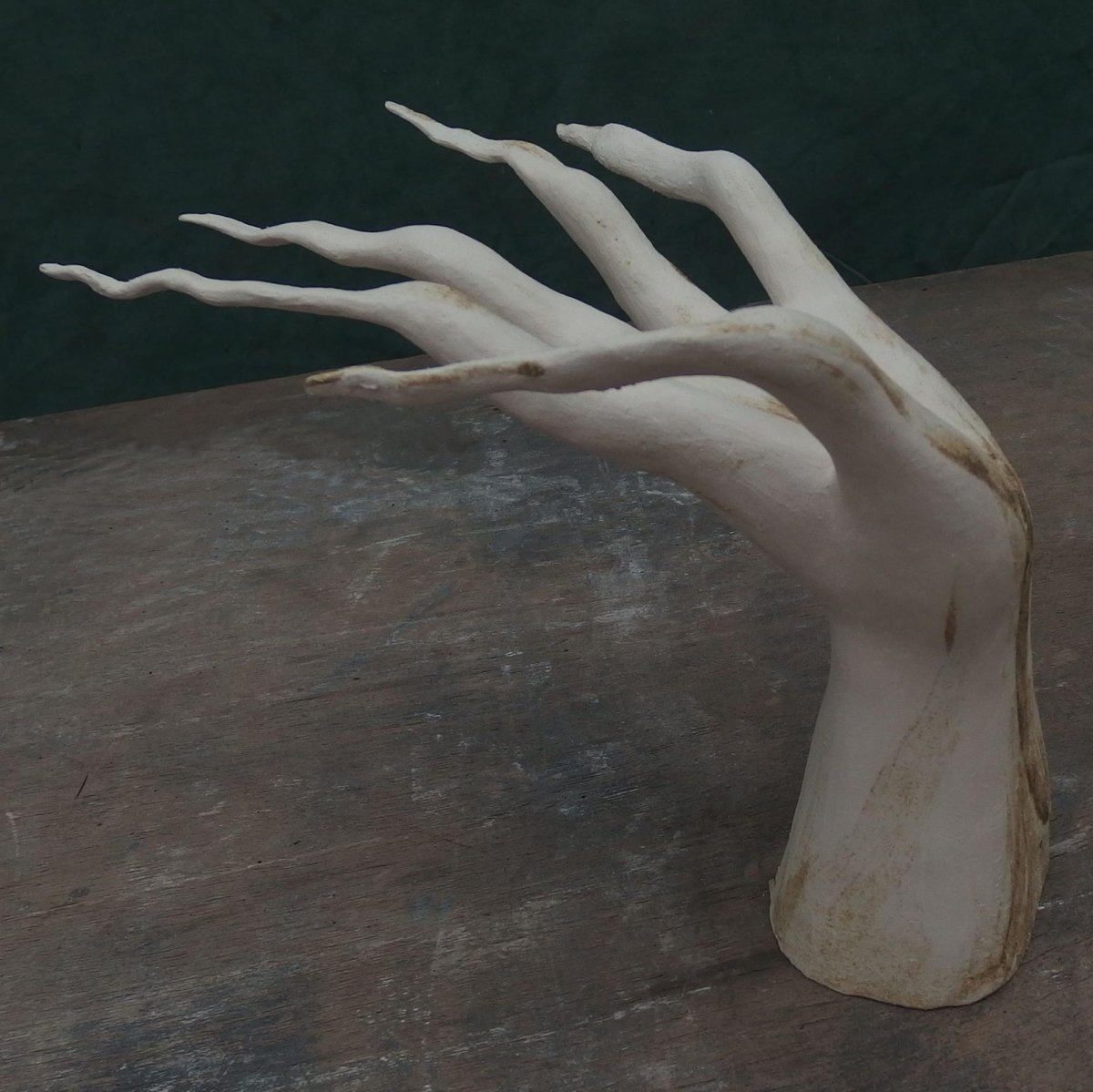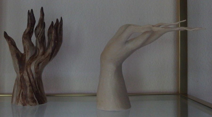 Mano estilizada de terracota blanca.
