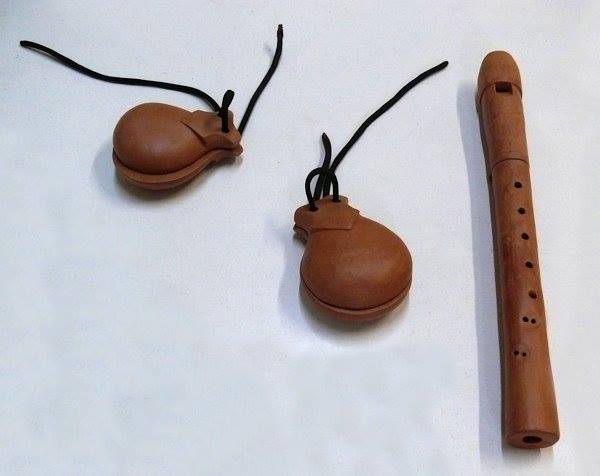 Castañuelas y flauta de barro.