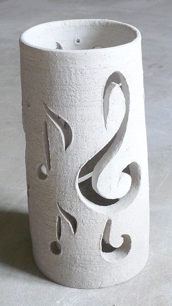 Cilindro musical en barro blanco.