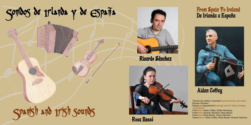 Maqueta musical en formato CD Sonidos de Irlanda y de España, de música tradicional. Interpretan el músico irlandés Aidan Coffey y R que R: https://musicalandia.eu/aidan-rquer